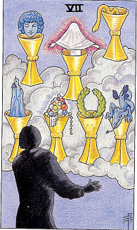 질문 2 : 타로 마이너 윈드 7번 카드, 컵스 7번 카드, 소드 7번 카드, 팬타클 7번 카드에 대해 각 기본 설명과, 사랑과 관련된 해석, 금전운에 대한 해석, 성공운에 대한 해석을 자세히 설명해 줘.