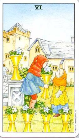 질문 1 : 타로 마이너 윈드 6번 카드, 컵스 6번 카드, 소드 6번 카드, 팬타클 6번 카드에 대해 각 기본 설명과, 사랑과 관련된 해석, 금전운에 대한 해석, 성공운에 대한 해석을 자세히 설명해 줘.